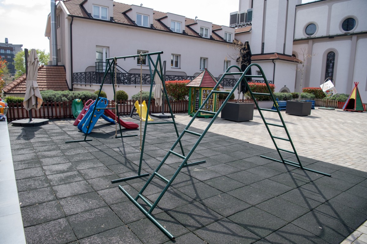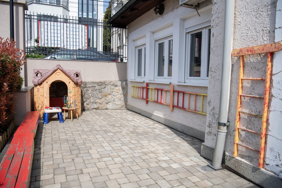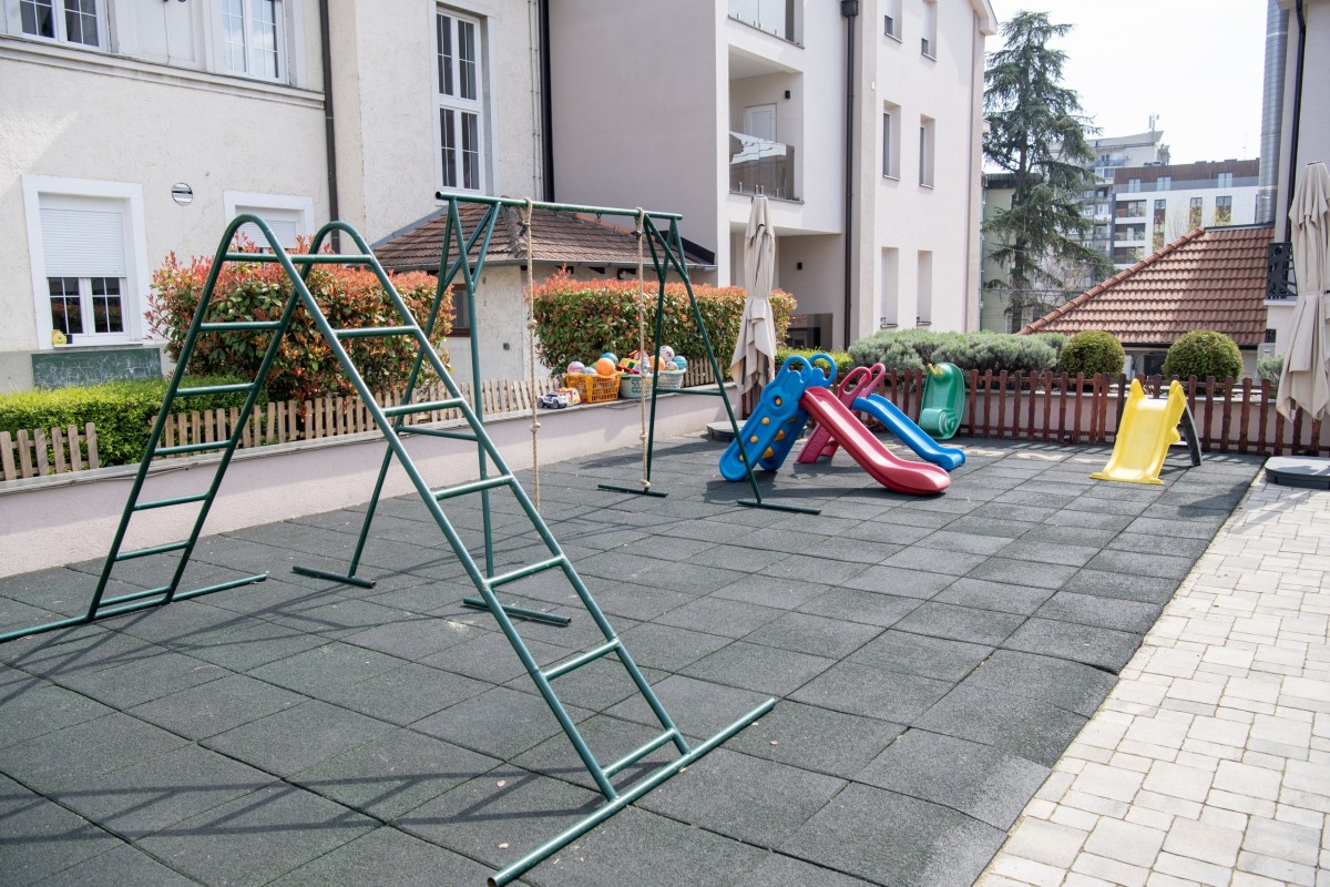 U dvorištu se nalaze različite zone za igru: travnate površine, prirodni materijali, sprave za penjanje, staze za trčanje i kutci za mirnije aktivnosti. Sve je osmišljeno tako da deca mogu da biraju — da li žele aktivnu igru, istraživanje ili opuštanje u prirodnom okruženju.